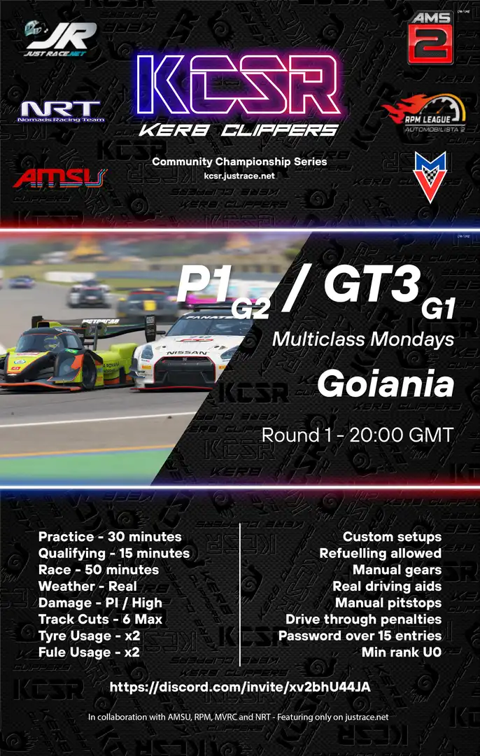 Unisciti a JustRace per alcune gare di campionato in Automobilista 2! Il round 1 di 6 è il lunedì 3 febbraio 2025 alle 20:00 UTC con GT3, P1Gen2 alle Goiânia.