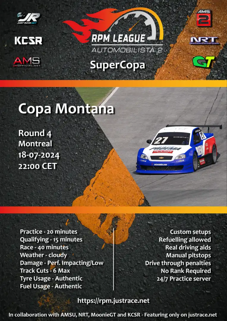 Unisciti a JustRace per alcune gare di campionato in Automobilista 2! Il round 4 di 5 è il giovedì 18 luglio 2024 alle 20:00 UTC con Copa Montana | Montana alle Montreal.